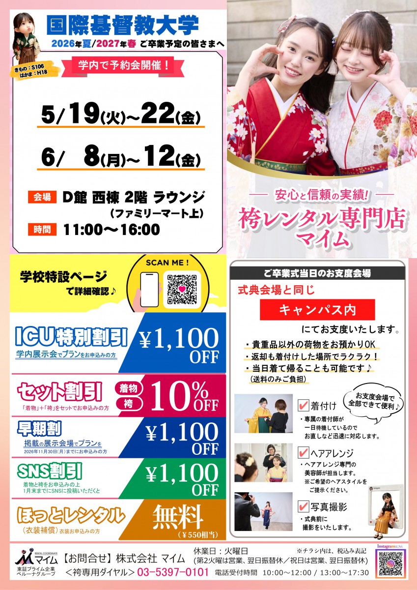 夏季卒業式にご出席される学生様を対象とした、卒業衣裳の「学内展示会」を開催いたします。