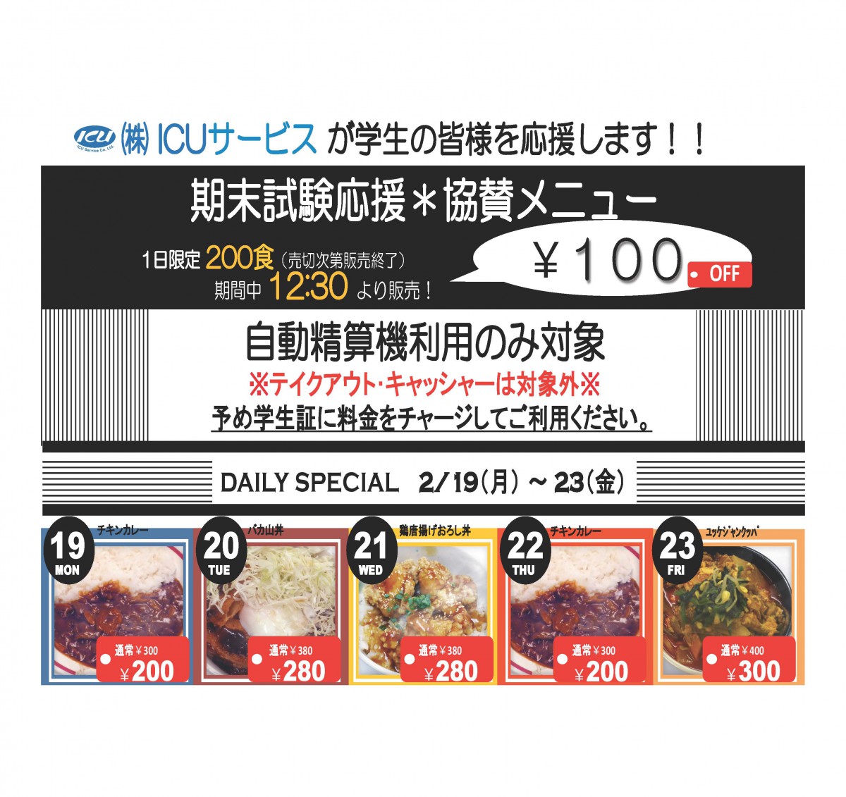 2/19(月)〜23(金)期末試験応援*協賛メニューのお知らせ